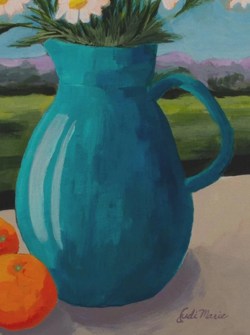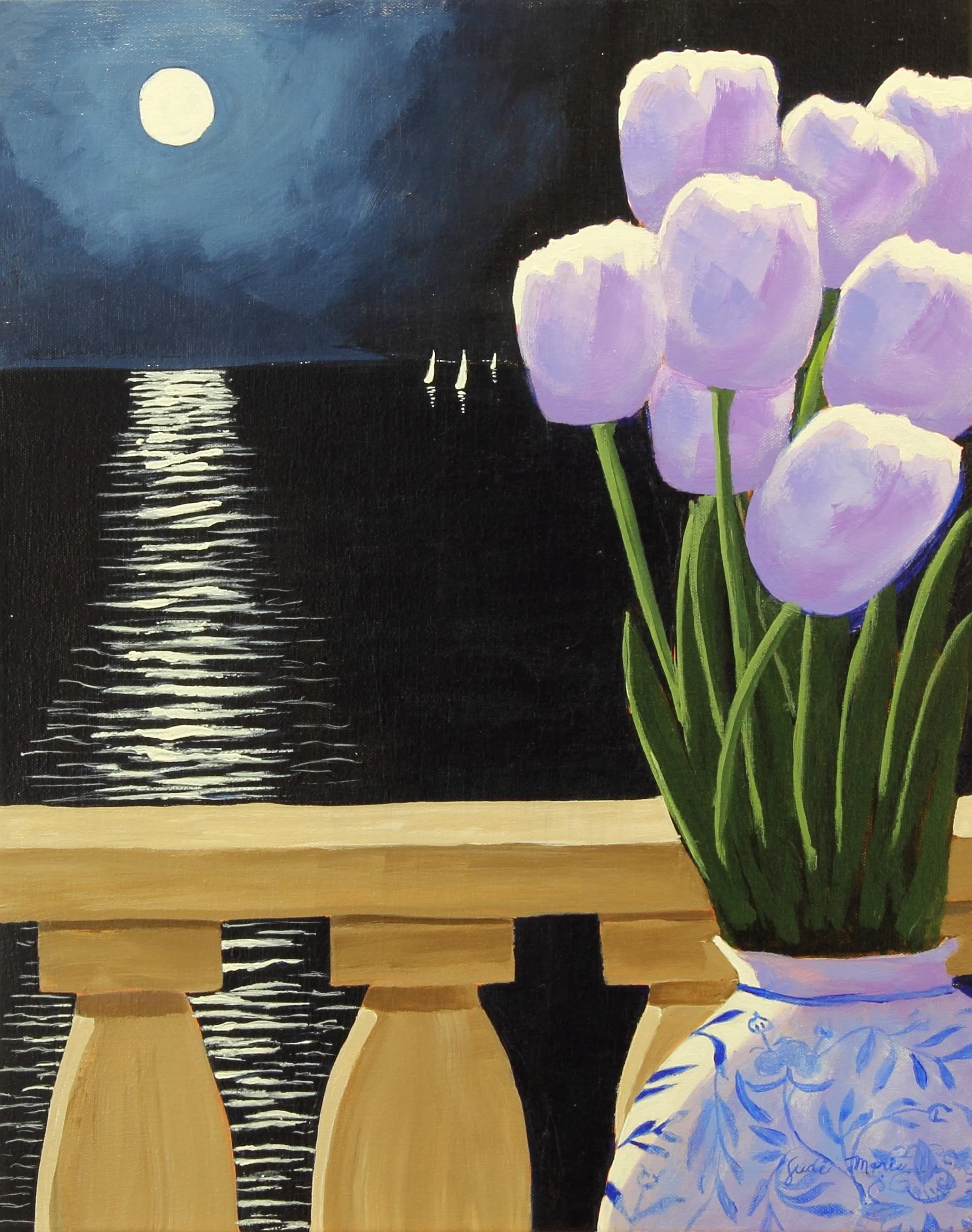 Categories: All All Paintings Available Sold All / Available Hummingbirds and Honeysuckles on Garden Trellis Birdhouse Neighborhood Turquoise Blue Vase with Daisies and Oranges Stargazer Lilies in the Moonlight Roses and Ocean Waves Sunflowers and Red Sailboat Daisies and Lupines in North Carolina Consider the Lilies of the Field Amerone della Valpolicella Wine Moonlit Tulips Jim's Bait Shop in the Pines Trees Trees Trees Autumn Trees II Pink Carnation Reflected Trees III Tree Birdhouse Daisies Hydrangea Boy in Kayak on the Lake Sale Boy and His Dog in the Woods Sale Beach Trees and Boats